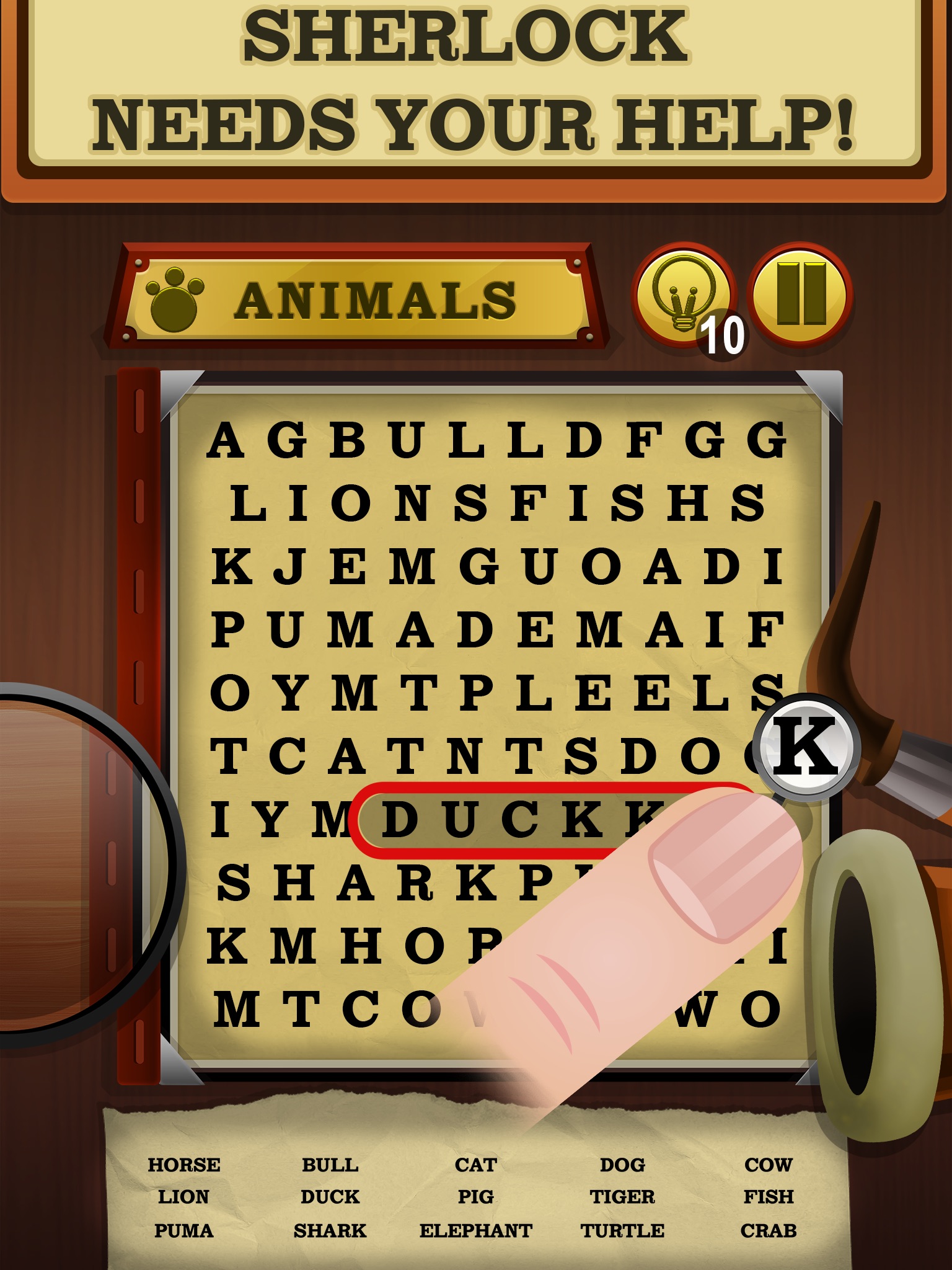 Sherlock’s Notebook is a fun and addictive word search game suitable for everyone. Children and adults, beginners and experts alike will enjoy the riddles and challenges of this word puzzle game.