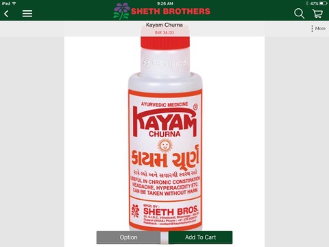 Sheth Brothers Online Store offers Best Ayurvedic Constipation Solution since 1965 with Kayam Churna, Bijorin Churna, Kayam Syrup, Thandak Churna, Somva – 34, Pratikar Churna and Komla Gutika. For Sheth Brothers, Ayurveda is just not business but to ensure that people get good quality products, hence, this explains the popularity of Kayam Churna.