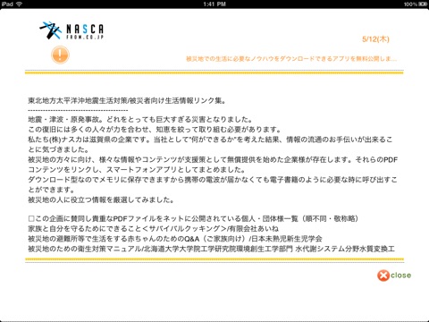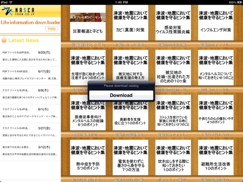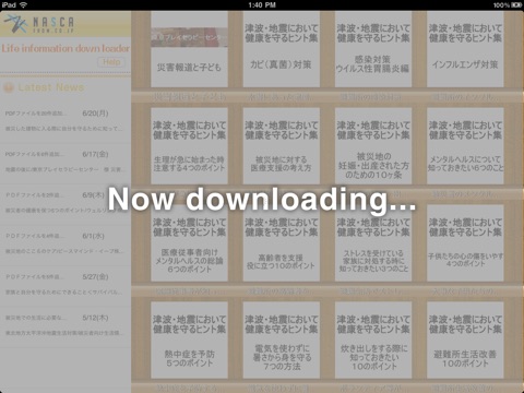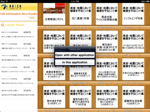Life information the down loader for the stricken area is an application program to be able to download PDF file to my terminal only by using the application program as neither a smart phone nor the device of the tablet etc. tie to PC.