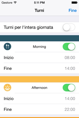 - easy setup for start/end shift times