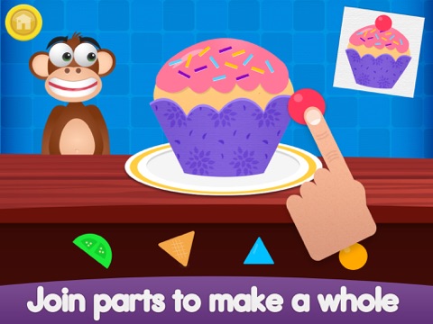 Shiny Party’s cutsie animals and interactive sound effects/actions capture the attention of any young child and especially engaging for the child with special needs. The story is about a Surprise Birthday Party which is a favorite topic among little ones. The graphics are eye catching and the narrator speaks slowly (and words are highlighted) as she reads the story and as she gives directions to play the easy to learn games. The games are sooo cute and simple to play. I especially like the cupcake pattern matching and coloring the shapes. This app mainly provides opportunities for learning shapes and patterns, but the child will also learn colors , sequencing and basic concepts. There are buttons on the screen which make it easy to click to the next page or go back.