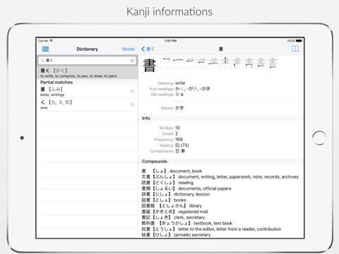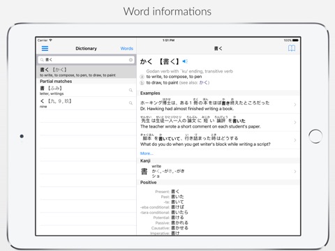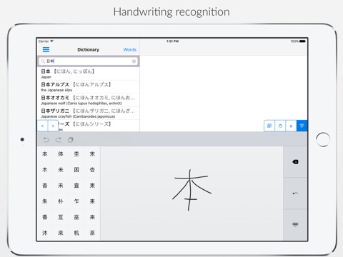 i cant believe this app has no reviews yet! FINALLY a japanese dictionary app that is FOR FREE and has a "drawing" function which makes searching for Kanji so much easier especially as a beginner! You get everything in this app you usually have to pay for in other japanese learning apps/dictionaries like imiwa etc. I LOVE IT.