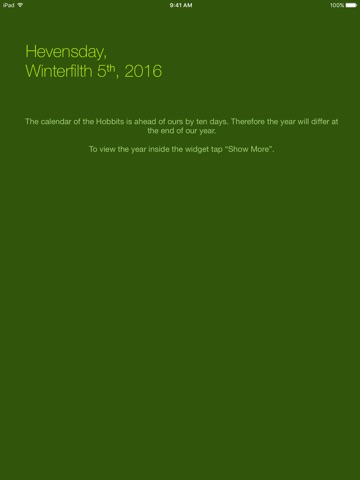 The Shire Calendar brings a bit of Middle-earth to your iOS device and Apple Watch. It will display the current day in the calendar of the Hobbits in the app or optionally in one of the available widgets or Watch complications.