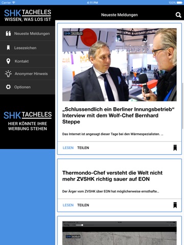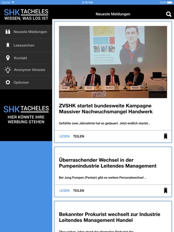 Die Nachrichten von SHK Tacheles sind mit unseren App noch schneller bei Ihnen. Wenn Sie wollen sogar per Push-Benachrichtigungen. Mit der Lesezeichen-Funktion können Sie sich ganz einfach wichtige Meldungen für später merken und griffbereit halten.
