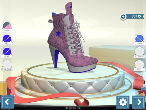 * Edit parts of the shoe - the vamp, the heel, the back quarter and the sole in order to create a perfectly designed piece of footwear!