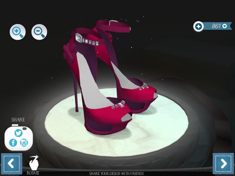 * Share your breathtaking shoe designs on major social networks: Facebook, Twitter and Instagram!