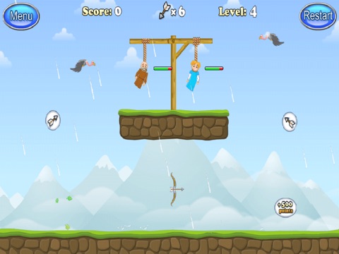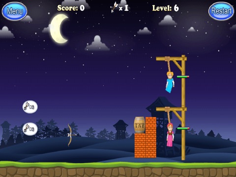 The castle is invaded by enemy and all its people are held hostage. The enemy wants to hang them to death. Time is up,and you are the warrior of the castle and escape there,but now you have to rescue those castle people in a limited time. If you move too slow,those people will die soon,or if you shoot in the wrong direction,they might also die. Save those people as soon as possible! Try to make use of different things to help you.