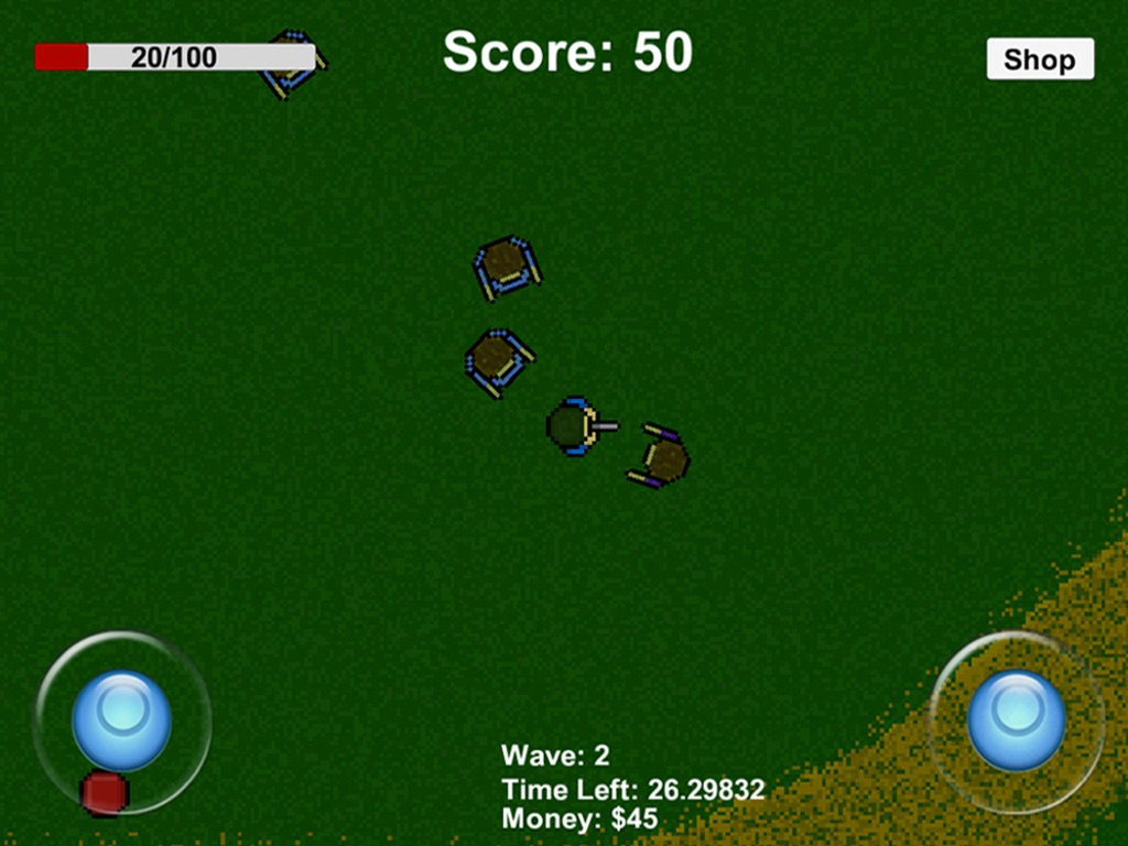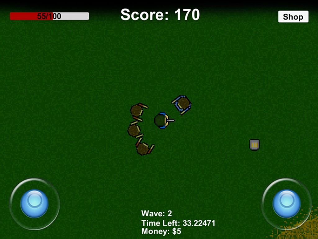 Shoot to Survive features Maps with explodable barrels, pickups, different enemies and a shop which can be used to upgrade player stats and attachments for your gun.
