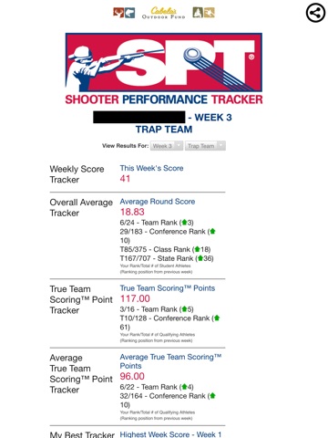 The Shooter Performance Tracker® (SPT) is the USA High School Clay Target Leagues exclusive performance tracking tool provided to all participants of the League. Each athlete receives personal access to the application to monitor their True Team® scoring and progress rankings companies against their team, their conference, their class, and all other athletes in the state!