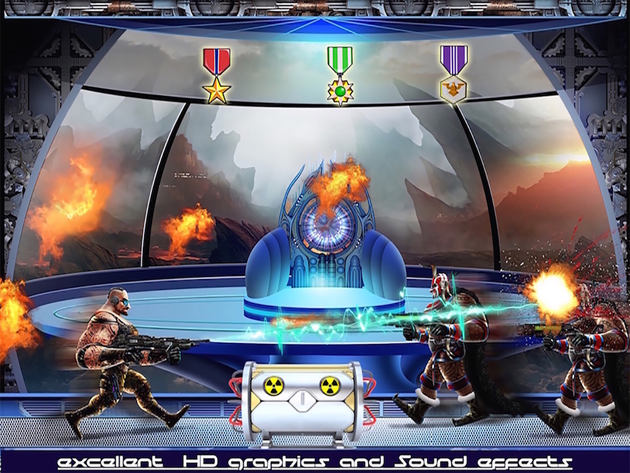 Your the only soldier left!!! Travel as far as you can without getting hurt. Pick up powers and extra health on the way. See how long you can last but watch out for the hard bosses every 1000 meters.