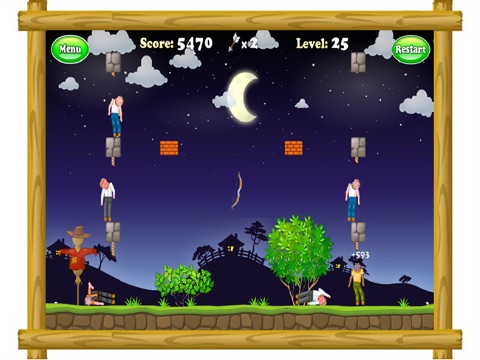 Its time to use your shooting skill to save innocent people! Some gangsters robbed the village and those gangsters kidnapped innocent people and then want to hang them to death with a rope. Theres no way that you can get any closer,the only weapon you have is the bow you practise every day. You have to save those innocent people by shooting the rope and not hurting them.