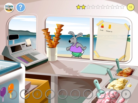 The App is suitable for children from 3 to 7; the cute rabbit characters, the ice cream van scenario and the ability to stock the van with new ice creams create the fun whilst the children learn to take away and enjoy the experience without thinking they are doing math!