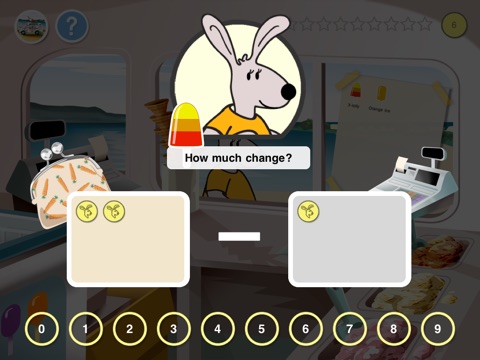 Shopkeeper Takeaway is the second in the "Math can be fun!" reception level math series. Using this App children will learn to take away, beginning with taking away visible coins, and progressing to taking away numbers (up to 10 - 10). The subtle staged approach which uses gold stars as a reward.