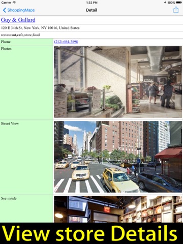 Users can choose to see store photos, Google street view, the interior of the stores, and store websites.