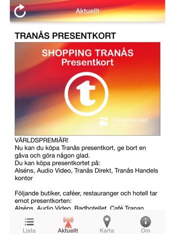 Med Tranåsappen får du unika erbjudanden och nyheter från butiker, caféer, restauranger, hotell, spa, mäklare med flera, direkt i mobilen. I denna uppdatering finns även digitala värdekuponger för Tranås Uniteds shoppingaktiviteter.