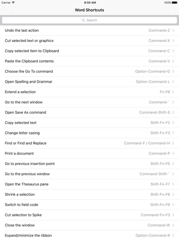 • Over 110 Shortcuts for Mac OS X and Windows versions of Word