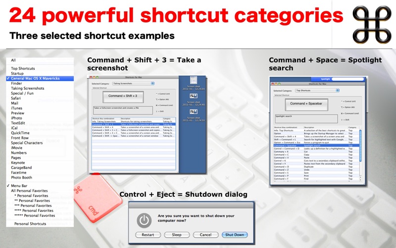 Hey, coole Sache! Jetzt weiß ich allerdings einige Shortcuts die nicht drin sind - es wäre cool, wenn man mit dem Programm Kontakt zum Entwickler aufnehmen könnte um diese zu kommunizieren. Bsps: ctrl+alt+cmd+8 = Nachtmodus des Bildschirms Mail: cmd + R = Antwort Mail: cmd+shift+R = allen antworten general: cmd + w = fenster schließen das sind die, die mir spontan eingefallen sind :) ansonsten - coole Sache