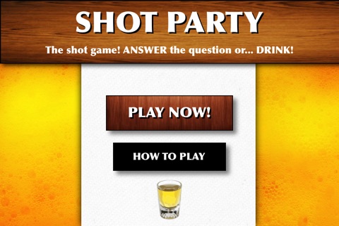 "Shot party" is a crazy social drinking game for iPhone where you and your friends have to give answers to funny questions in turns. If you fail or repeat an answer, choose: DRINK OR FACE A PUNISHMENT!