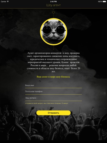 Проверить цены на выступление артистов, получить помощь в заключении контракта, все правовые, творческие и экономические вопросы российского шоу-бизнеса. Скачайте, напишите, вам ответят через 15 минут