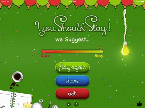 Looking at the situation, you will have to decide and analyze that either you should stay or quit. If the situation applies to you and your current gig, select I Should Stay. If the situation doesn’t ring true to you, select I Should Quit and if its even worse, select I Should Die.