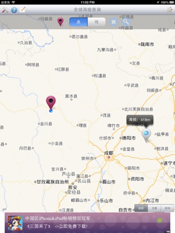 Show Altitude: Its very easy to query for the altitude anywhere on earth. To tap in the map or input the latitude,longitude,youll get the altitude immediately.