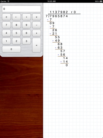 A very useful app to our elementary school kids for doing long division and multiplication. More important than just getting the right answers, it shows them the steps how to get there.