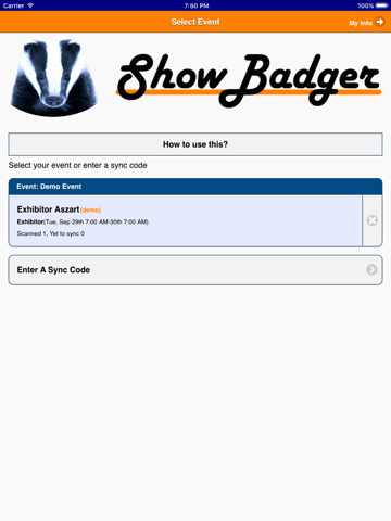 ShowBadger is a badge scanning app for event organisers to offer lead retrieval services to their exhibitors and/or for scanning badges to access an event or sub-event.