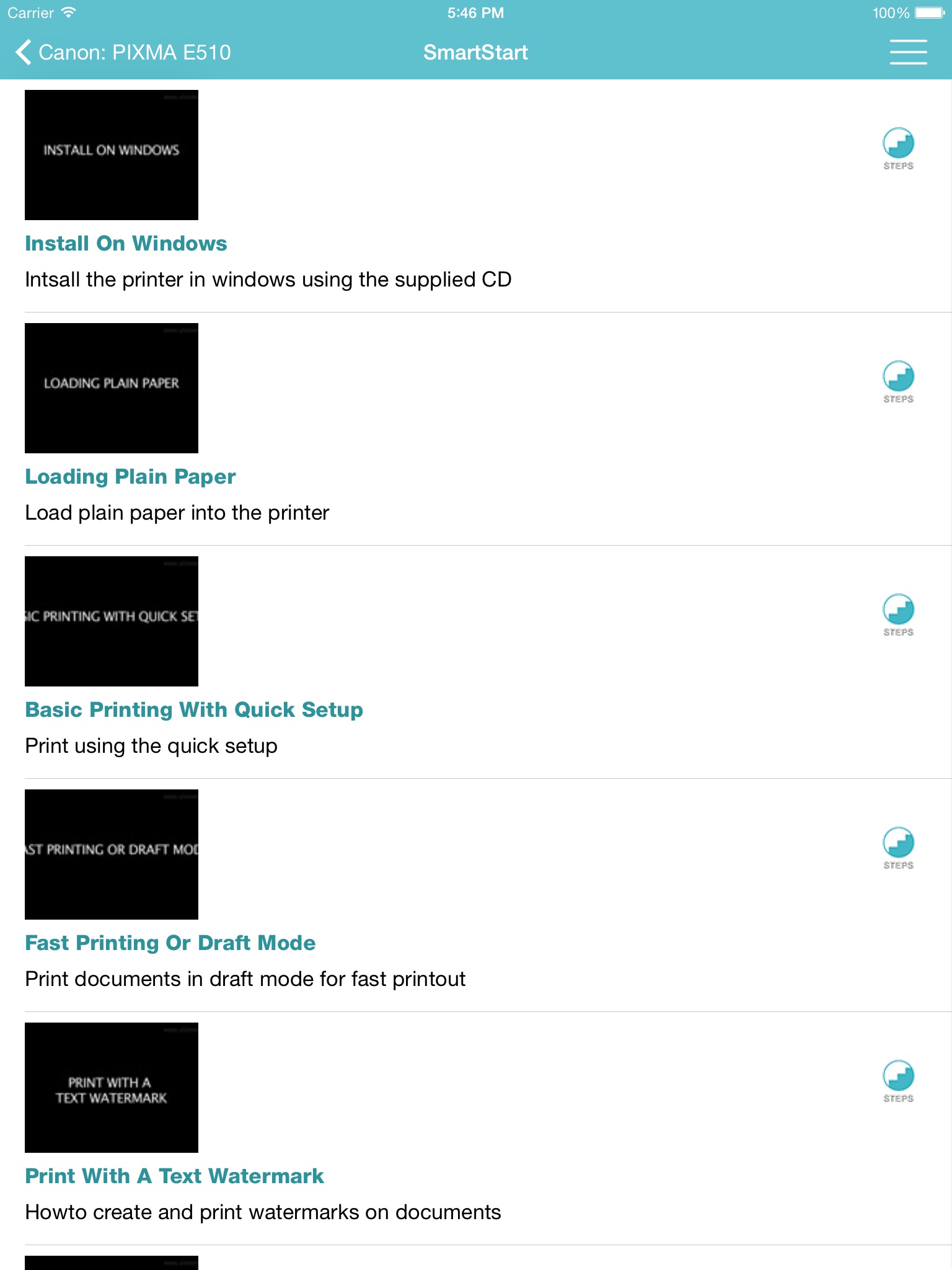 With your Showhow2 for Canon Pixma E510 app now Everything is Easy!