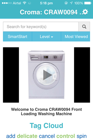 Showhow2 for Croma CRAW0094 is a completely new kind of how to app. It is focused on the Croma CRAW0094 washing machine organised intuitively to take you to your solution quickly. How to load detergent, how to wash clothes, how to use the delicate wash, how to set temperature. It’s all there - in step by step video. You can key in a simple search like "child lock" or go through the many organised sections like SmartStart your must use features, Levels and Most viewed. You can also get started with the given popular Tags.