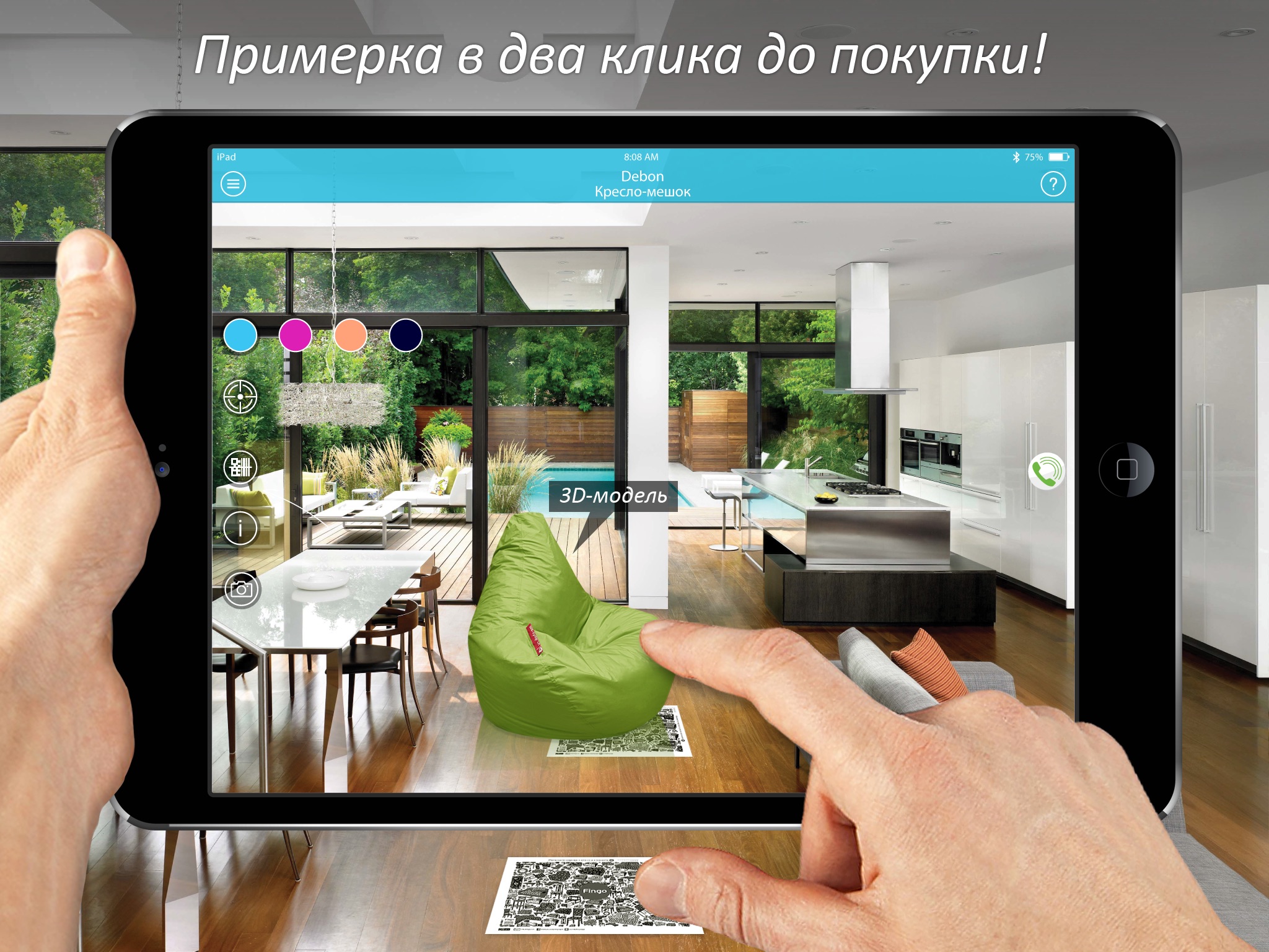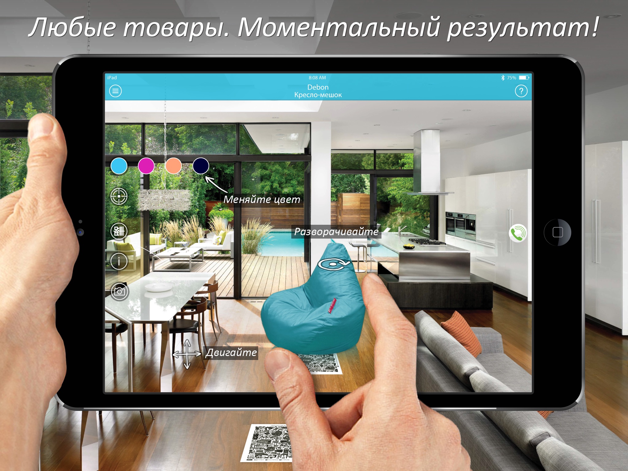 Приложение основано на использовании технологии дополненной реальности, которая позволяет увидеть реальную окружающую обстановку со «встроенными» 3D-объектами. Вы сможете сделать фотографию своего интерьера с виртуальными предметами в нем и поделиться ей с друзьями.