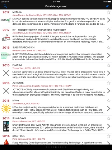 Cette application vous permettra de découvrir les différents travaux de recherche appliquée et de développement menés dans nos écoles, la Haute Ecole d’Ingénierie et de Gestion du canton de Vaud et la Haute Ecole de la Santé Vaud. Vous pourrez les consulter triés par catégories, par instituts ou unités de recherche et par type de projets. Vous pourrez également effectuer des recherches parmi les projets disponibles, et contacter les responsables de projets, listés dans cette application, au besoin.