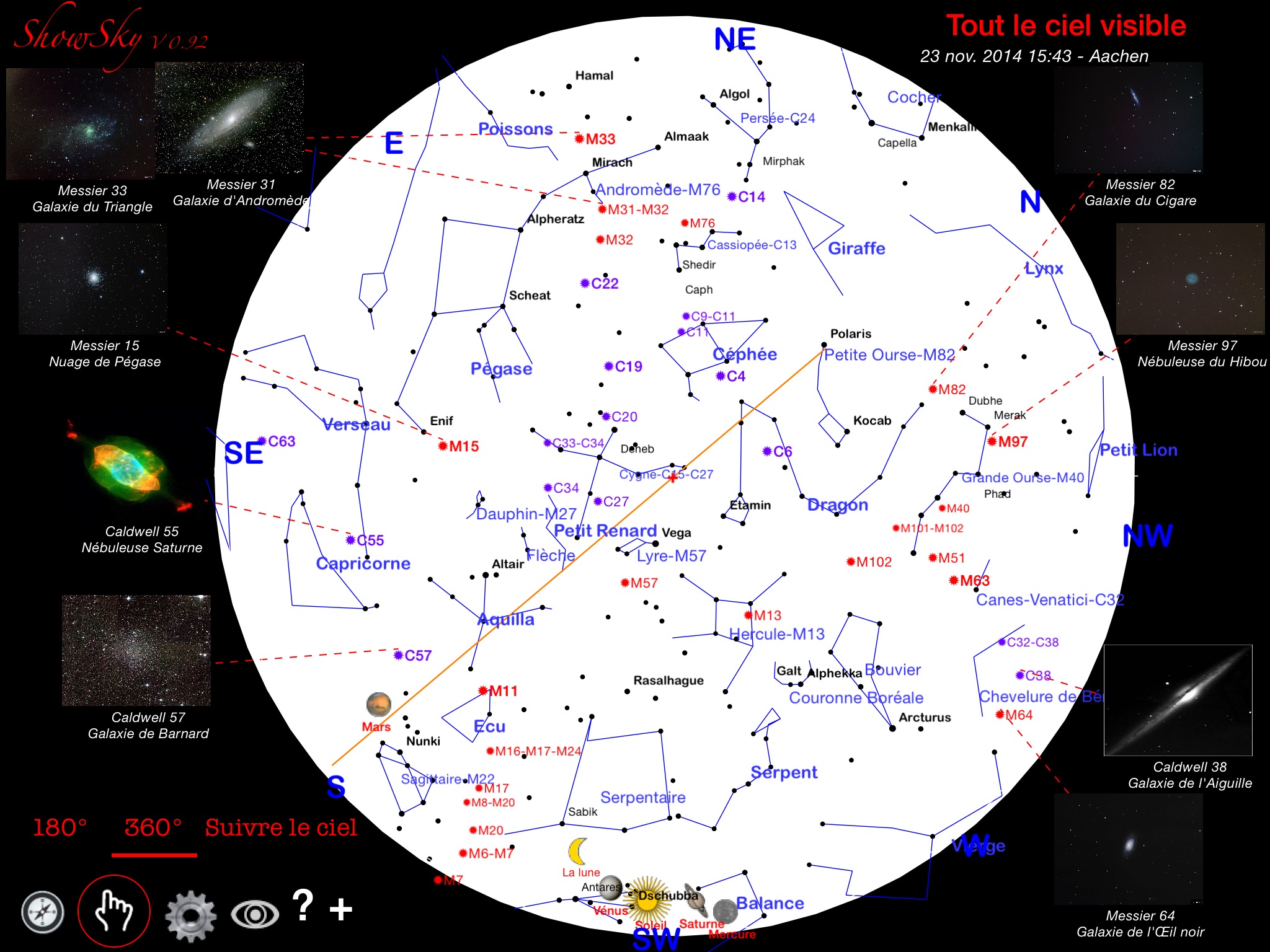 ShowSky is an astronomy app for everyone. It is designed to let you easily understand and learn the sky in front of you. It gives you a complete view including stars, constellations and deep space objets including photos.