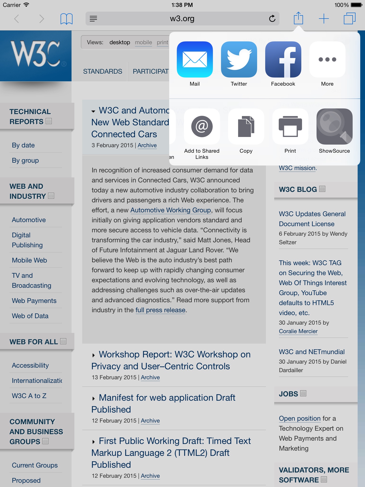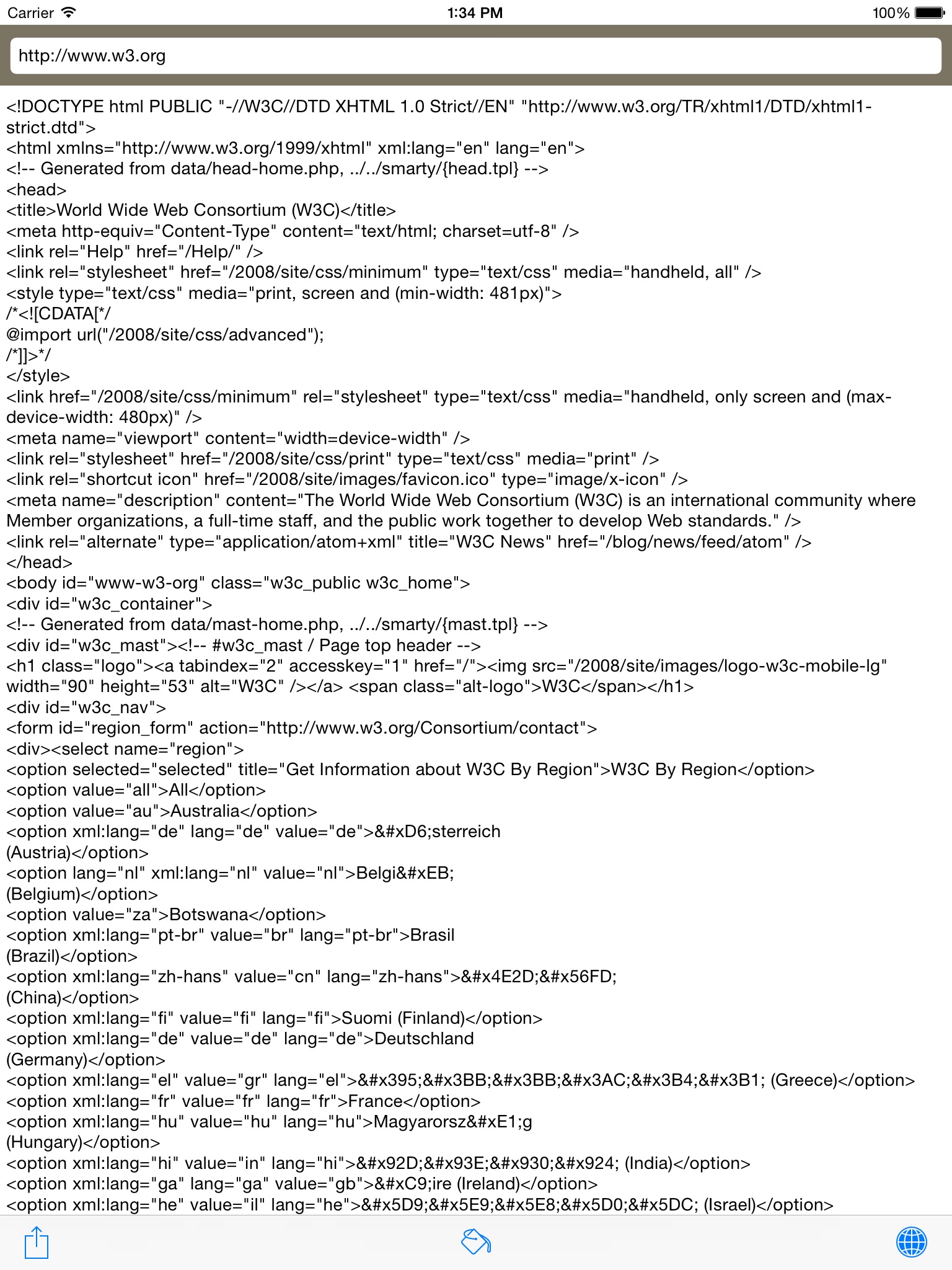 As an app, you can also edit the URL, and retrieve the source of any web URL.