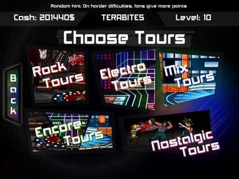 Its Showtime! A crowd of crazy fans managed to get pass security and are litterally attacking you at a live show. Repel them back with your music and your powers, because you know, the show must go!