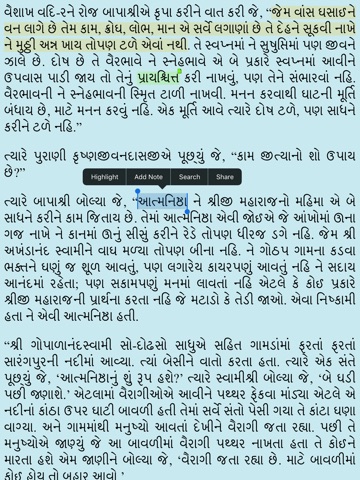 Whereas discourses delivered by swahsiddha Anadi Mukta like Bapashri are our holiest and best Smrutis. The contents of the Vachanamṛt are axiomatic; whereas the sermons delivered by Bapashri have to be supported by the Vachanamṛt. Bapshri says, “My sermons are in the place of a grain, whereas Vachanamṛt is in the place of meal.”