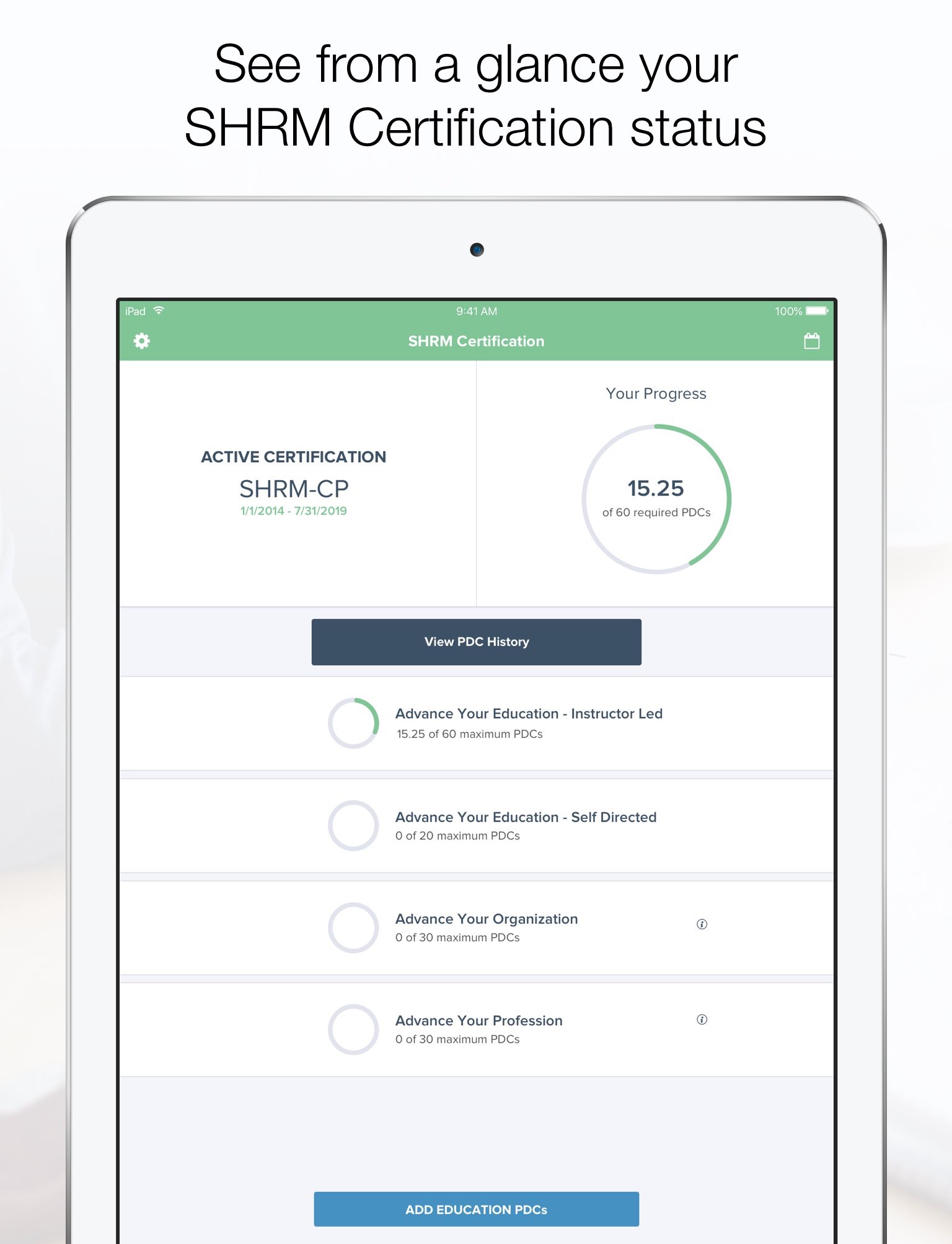 The official certification app from the Society for Human Resource Management, exclusive for SHRM-CP or SHRM-SCP credential holders. Maintain and grow your SHRM-CP or SHRM-SCP via the SHRM Certification app!
