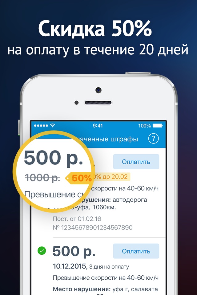Приложение предоставляет самую полную и точную информацию по всем неоплаченным штрафам, а также дает возможность произвести быструю оплату по ним.