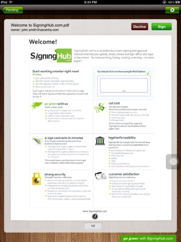 Go Green with SigningHub work faster, cheaper, and with greater security than chasing paper documents or using emails. In just a few simple steps you can sign and return a document, send documents for others to sign, and so much more!