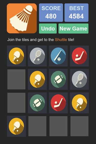 Swipe to move all tiles. When two tiles with same icon touch, they merge into one.