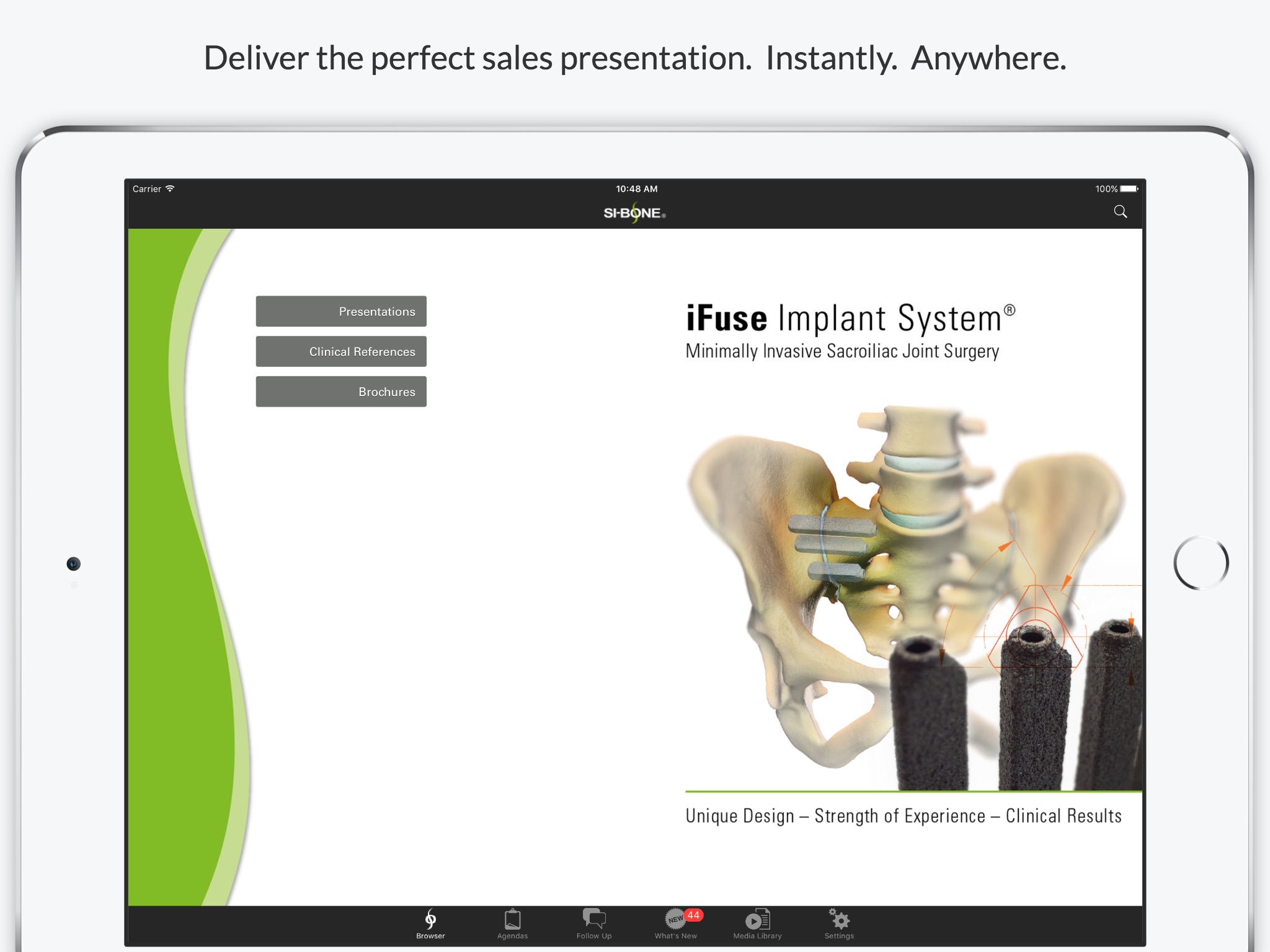 With the SI-Bone App Data Room (ADR) you can quickly and easily create a custom app for all your presentation needs.