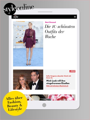 Style ist das grösste Fashion- und Celebrity-Magazin der Schweiz. Täglich erhalten Sie auf sistyle.ch neue und spannende Inhalte, die Sie jetzt mit der Style-App noch einfacher von unterwegs abrufen können!