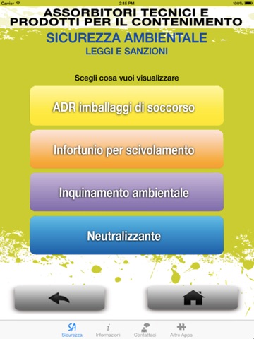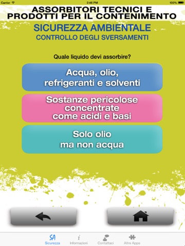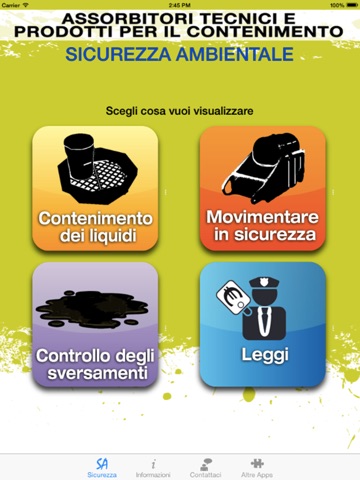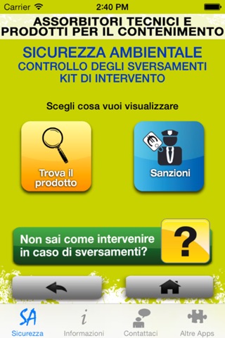 L’applicazione Sicurezza Ambientale è una Applicazione utile a coloro che operano nel campo della sicurezza ambientale. L’applicazione, attraverso dei percorsi guidati, aiuta ad identificare quali prodotti assorbenti o quali prodotti di contenimento potrebbero garantirvi una gestione sicura dei vostri liquidi pericolosi e non.