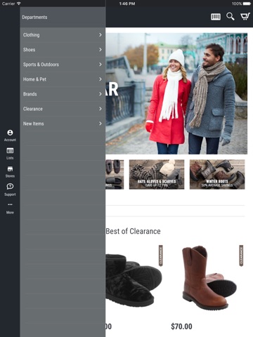 App does not work in landscape on iPad. Filtering by size does function properly (items unavailable in selected size appear).