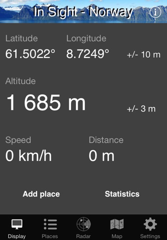 In Sight Norway is also an altimeter, speedometer and also estimates the distance youve traveled. Choose between metric (km, meter) or imperial (miles, feet) units.