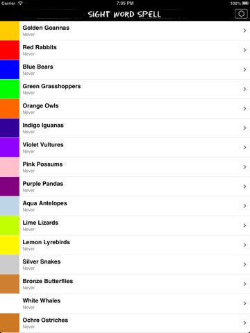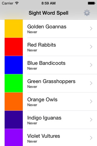 The sight words are grouped into the following colours which can be unlocked: