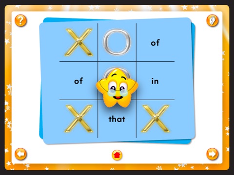 Tap on the picture of the ear to hear a word. Click on that word in the Tic Tac Toe grid. Next, the computer takes a turn. Keep playing the computer until one of you has three in a row. The computer will also automatically say the next word to you. Tic Tac Toe games are random and different each time; play as much as you like.