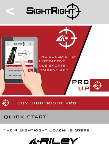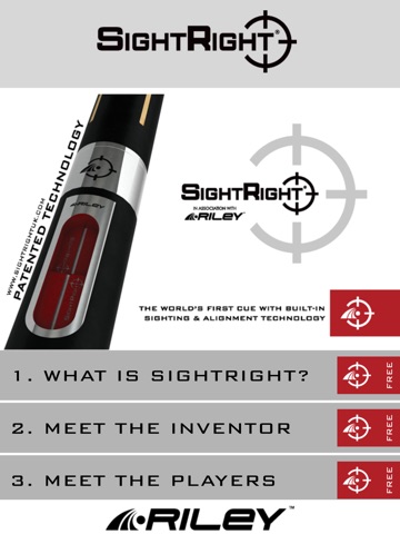 In this app, SightRight® inventor Stephen Feeney will take you through his 4 SightRight® Steps, SightRight® practice routines and many other features and benefits that RILEY cues with SightRight® Technology can deliver to help you become a much more accurate cue sports player.