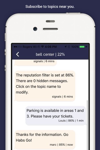 Signals Instant Messaging is a free public messaging app available for iPhone and other smartphones. Subscribe to topics near you and exchange information about the topic.