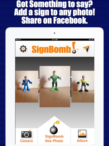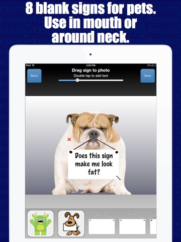 Drop a SignBomb on any photo! Share with friends on Facebook, Twitter or Tumblr. You can also send your SignBomb as an attached email. Great for pet owners wanting to send hilarious messages from their dog or cat.