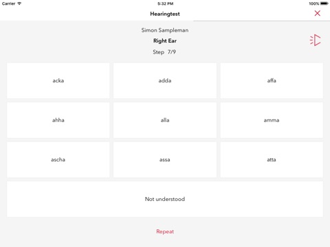 During the test, you will hear nonsense words in a fluctuating background noise. Your task is to select the word you heard from several options displayed on your screen. Depending on your answers, the background noise will be adjusted. Unlike similar hearing tests, the volume setting is not crucial.